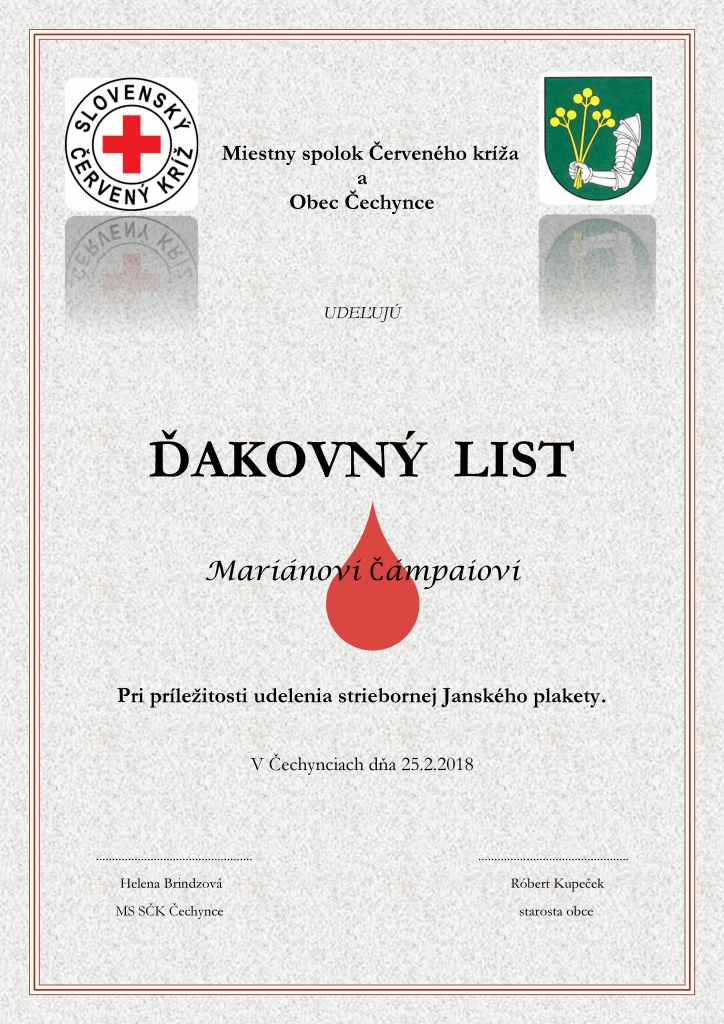 Zhromaždenie členov MS SČK Čechynce a odovzdávanie Strieborných Janských plakiet - Csehi Vöröskereszt tagsági gyűlése