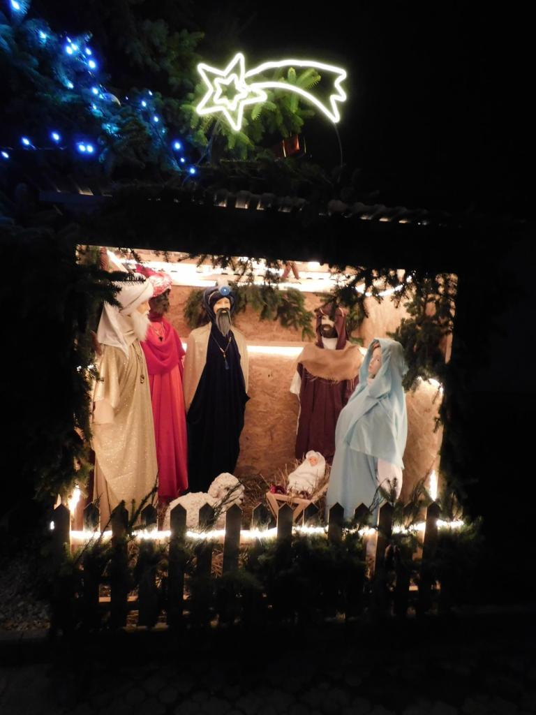 Vianočnú atmosféru v našej obci opäť po roku na námestíčku pri obecnom dome dotvára Betlehem s postavami v životnej veľkosti.