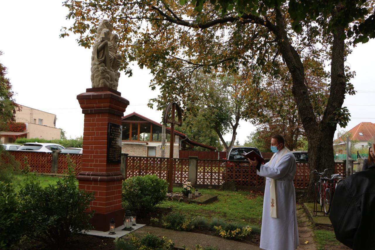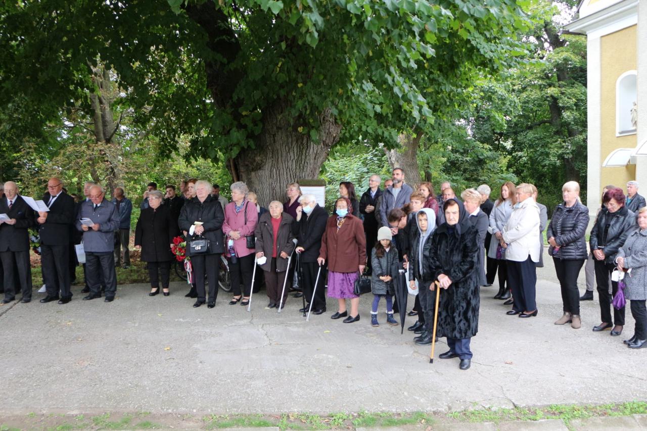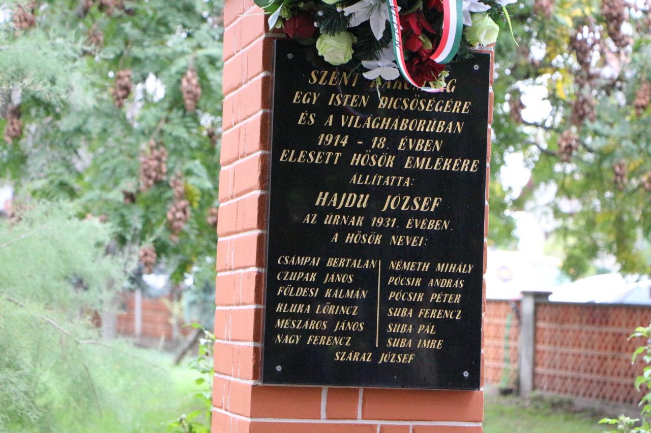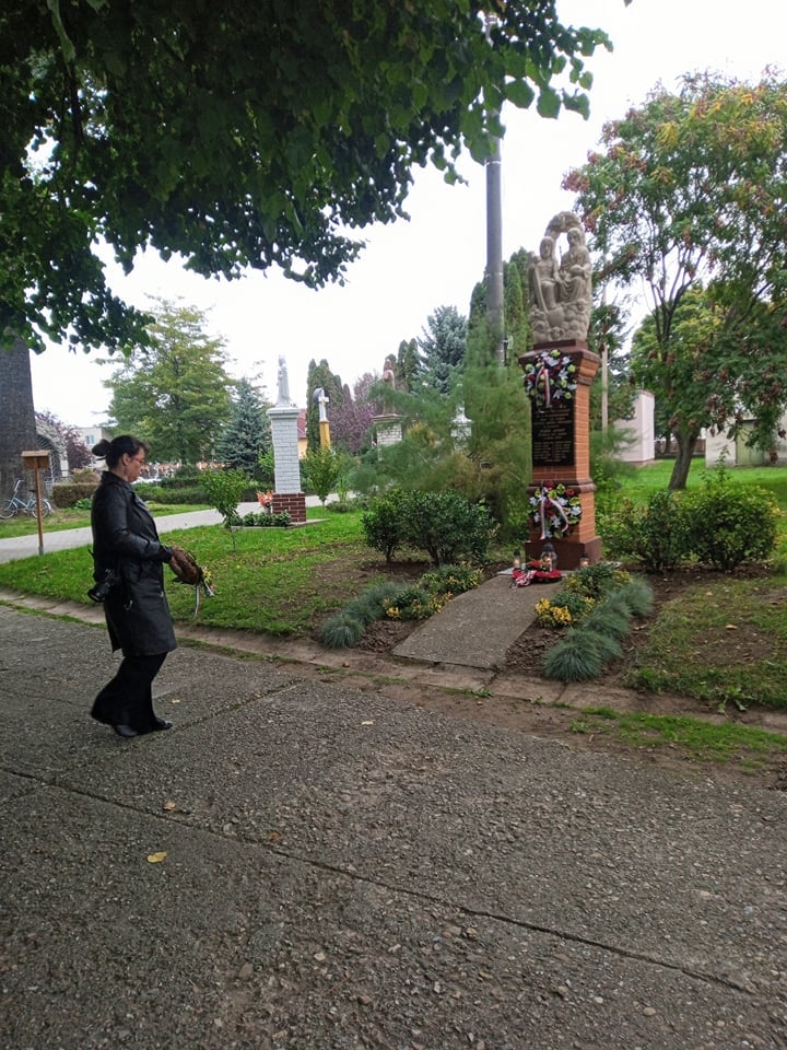 Pietny akt kladenia vencov na miestnom cintoríne pri pamätníku padlých vojakov v prvej svetovej vojne z našej obce, dňa 10.10.2021 pri príležitosti renovovania a vysvätenia sochy. Pamätník bol postavený v r.1931 Jozefom Hajdúom. Na podstavci je tabuľa s menami 13 obetí a v hornej časti je osadené súsošie s.Trojice.