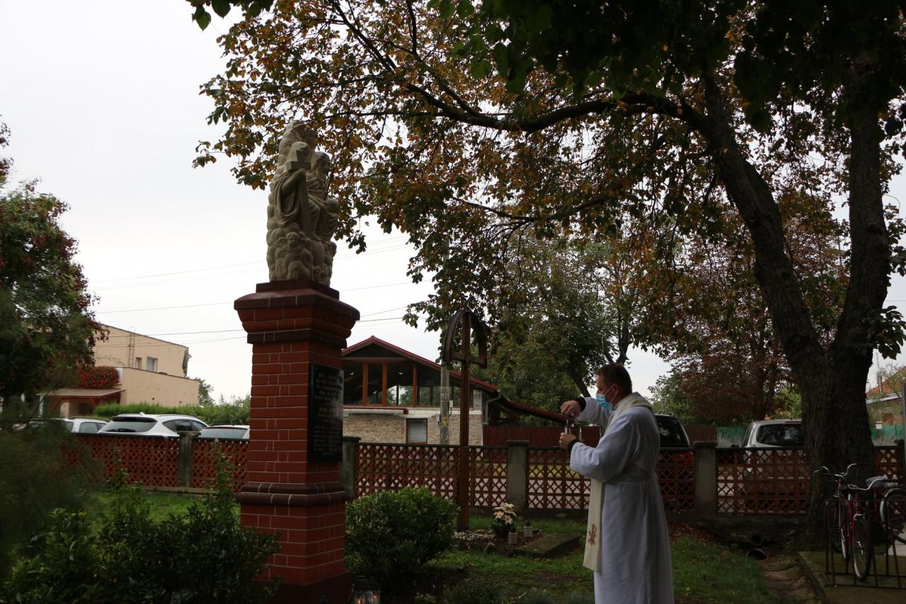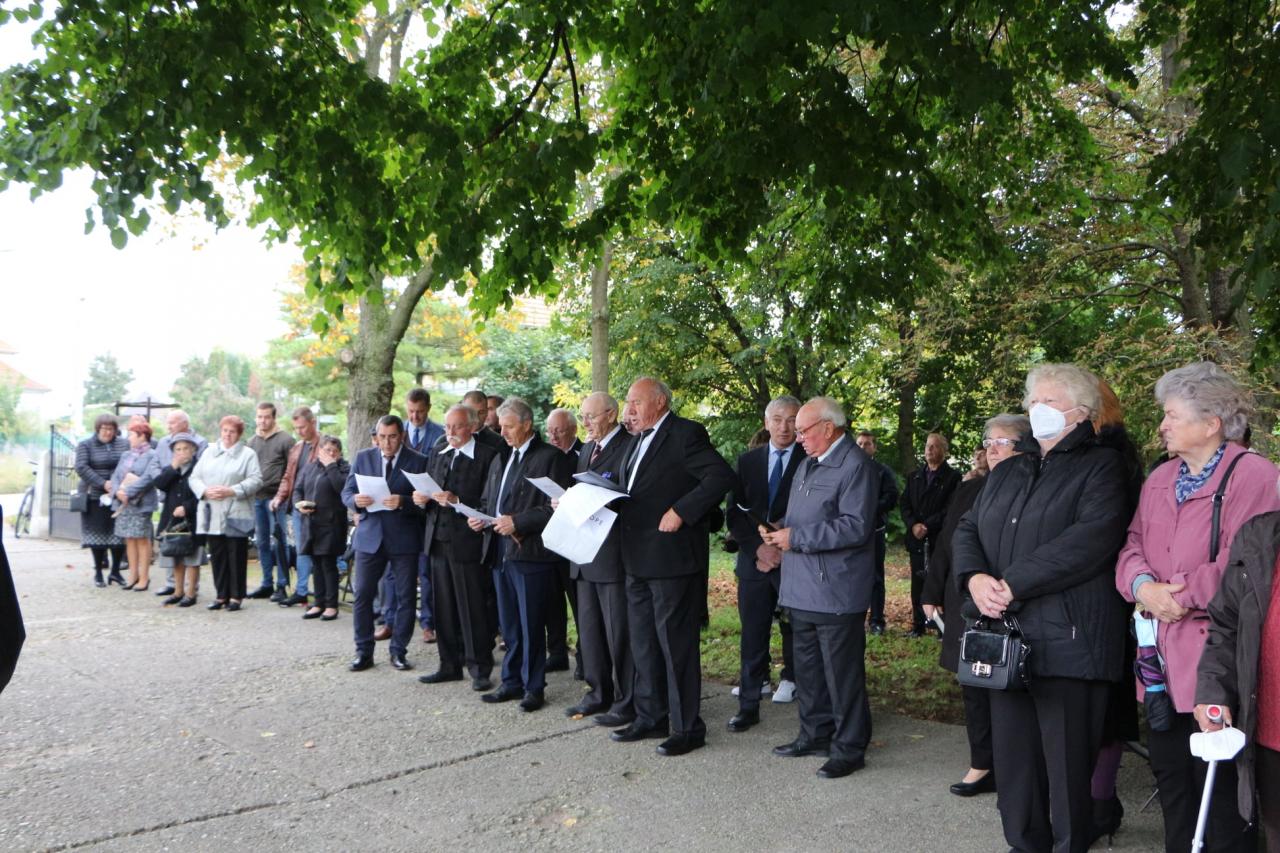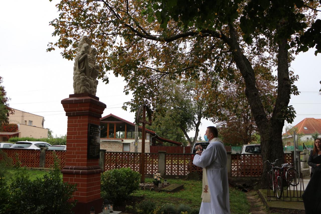 Pietny akt kladenia vencov na miestnom cintoríne pri pamätníku padlých vojakov v prvej svetovej vojne z našej obce, dňa 10.10.2021 pri príležitosti renovovania a vysvätenia sochy. Pamätník bol postavený v r.1931 Jozefom Hajdúom. Na podstavci je tabuľa s menami 13 obetí a v hornej časti je osadené súsošie s.Trojice.