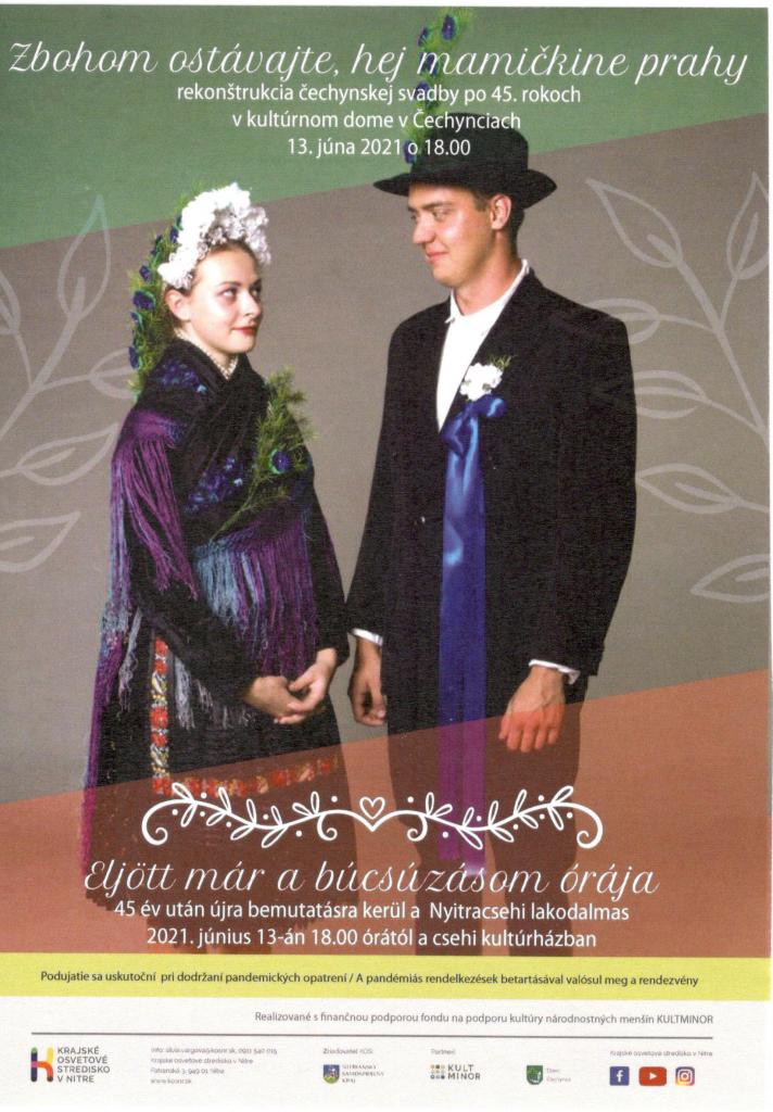 A járvány kitörése óta az első rendezvényünkön bemutatására került 2021. június 13-án a helyi kultúrházban a Csehi Község Önkormányzata, Nyitra Megye Önkormányzata és a Nyitra Megyei Művelődési Központ támogatásával az "Eljött már a búcsúzásom órája..." című, falunkban már 1976-ban előadott lakodalmas műsor.