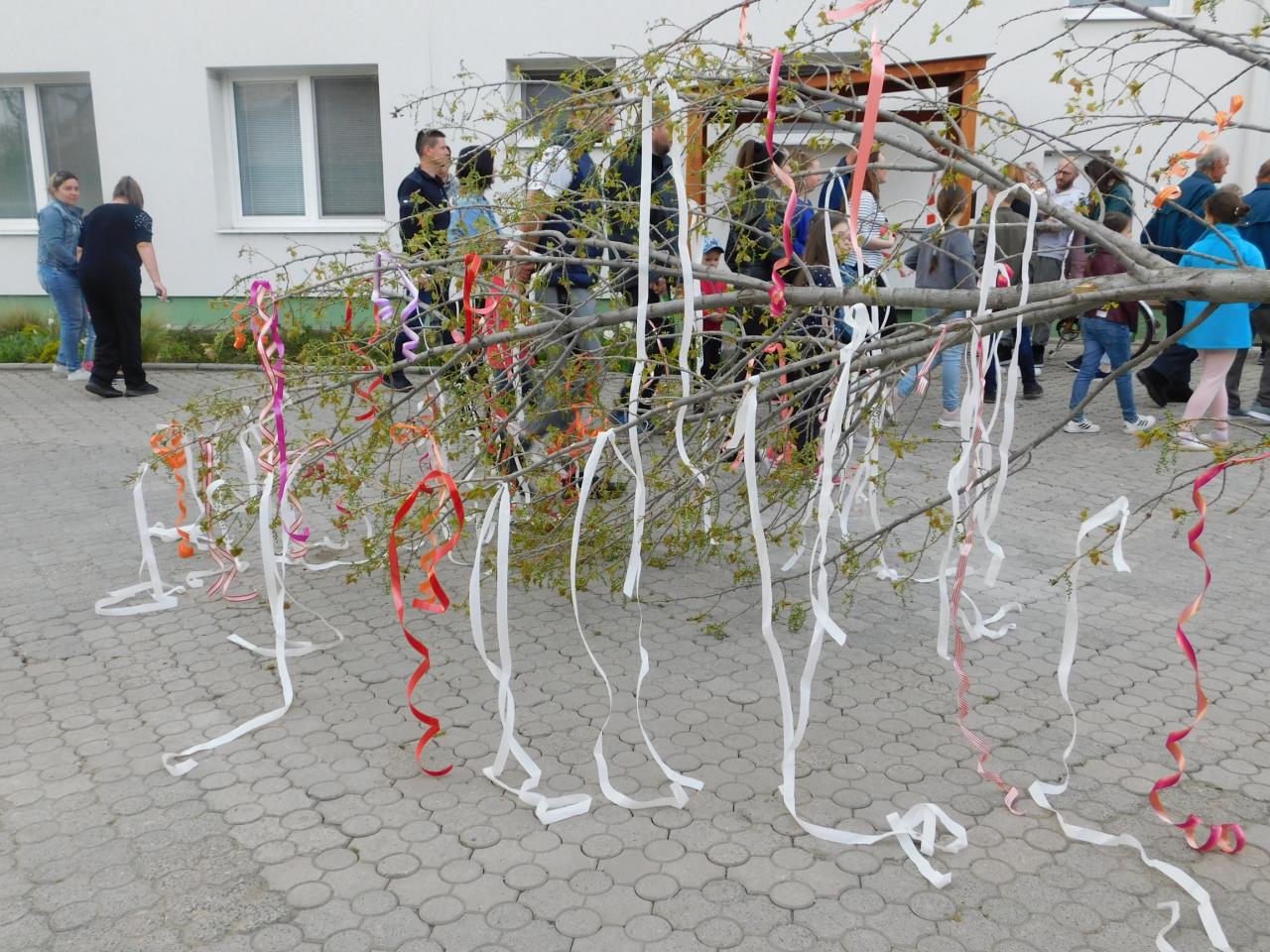 3. szallagok feltűzése a Májusfára a helyi és az itt megjelent gyerekek-fiatalok által