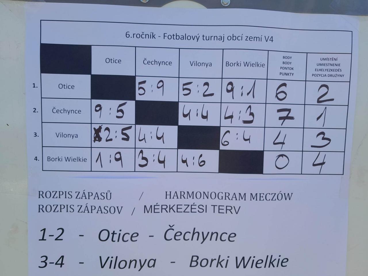 Futbalový turnaj štátov V4 v Oticiach (ČR) - A V4 államainak focitornáján Oticében.