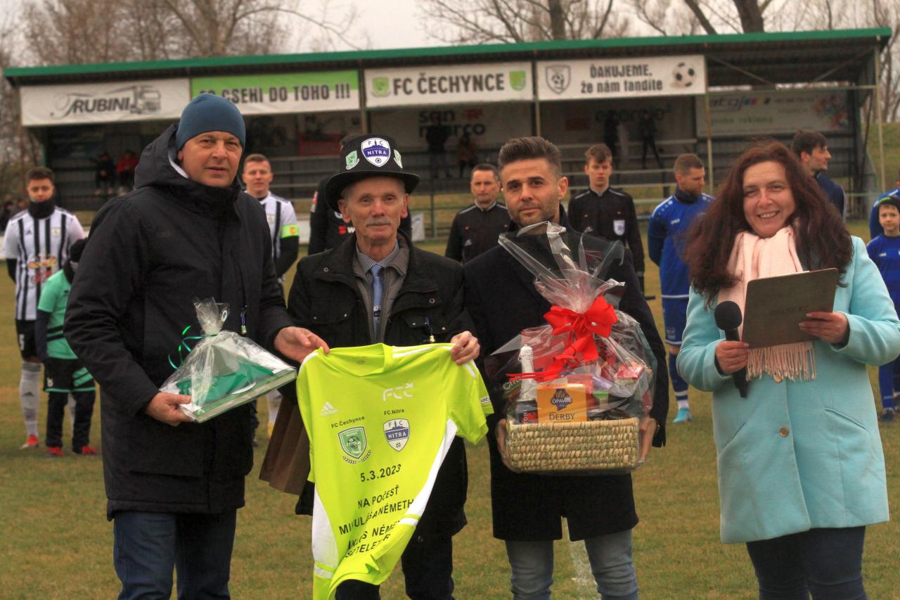 Dňa 5.3.2023 sa v našej obci písala história nakoľko k nám zavítalo futbalové mužstvo krajského a okresného mesta FC Nitra. Myšlienka vznikla v hlavách vedenia FC Čechynce za čom im veľká vďaka (samozrejme aj za organizovanie podujatia). Dobrá a užitočná vec sa spojili a 76. narodeniny p.Mikuláš Németh oslávil splneným snom, do jeho rodných Čechyniec, kde kedysi organizoval športový život (keď sa ešte volali Nitrany), mu docestovala milovaná FC Nitra. Ako predzápas odohrali naše mladé nádeje U11 tiež s FC Nitra U9 "B" s výsledkom 5-2. Naše "A" nakoniec prehralo s výsledkom 2-5. Nakoniec veľká vďaka za myšlienku, za organizovanie a vzorné reprezentovanie obce.