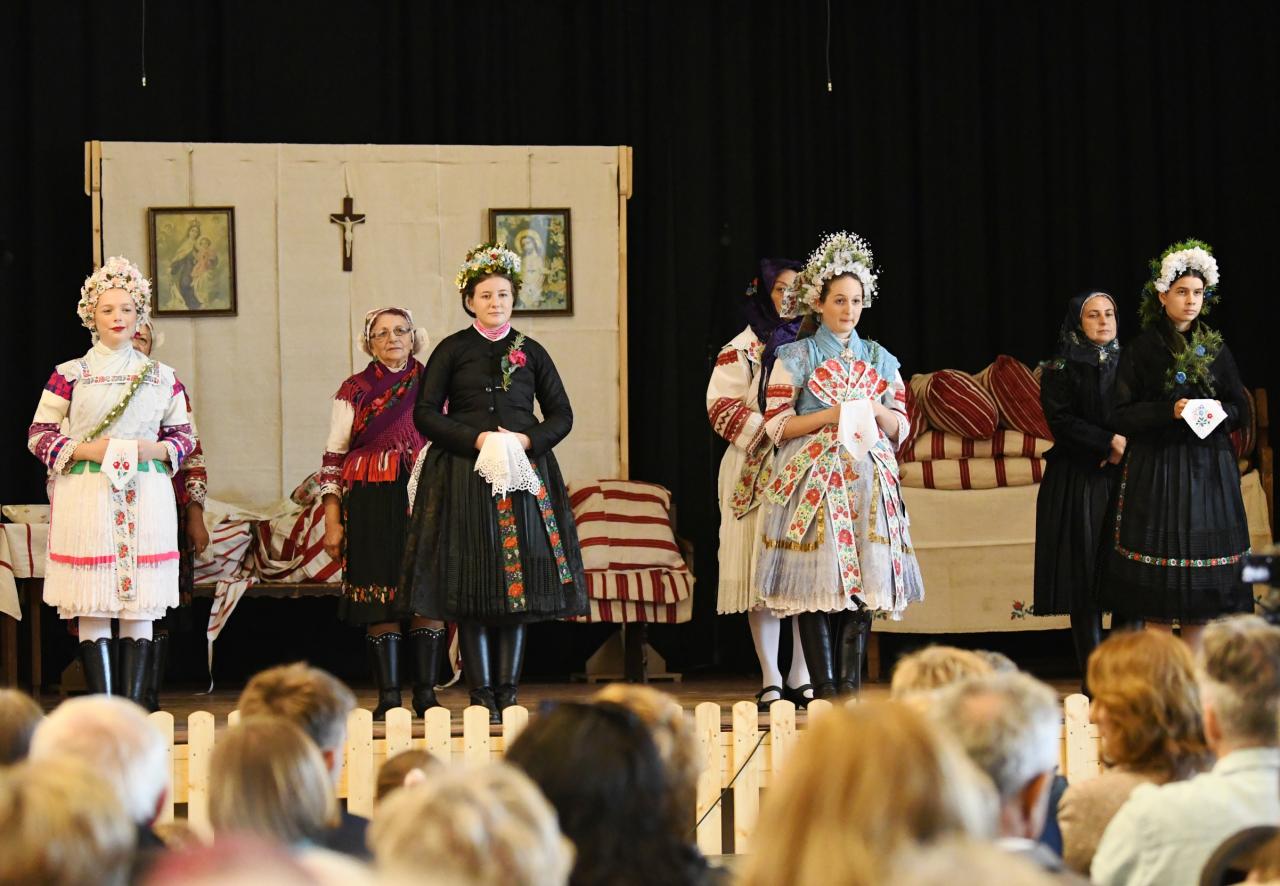 podzoborskej svadby v Jelenci. Pani Mária Jókai, ktorá s týmto programom v roku 1983 získala cenu UNESCO za oblasť kultúrneho dedičstva. Aj dnes, vo svojich 88 rokoch stojí pri zrode choreografie obnoveného predstavenia za pomoci Margity Bencz. Na javisku zazneli hlasy a kroky folkloristov z podzoborských obcí, v odevoch typických pre ich dediny. Medzi nimi boli aj vystupujúci z Čechyniec.