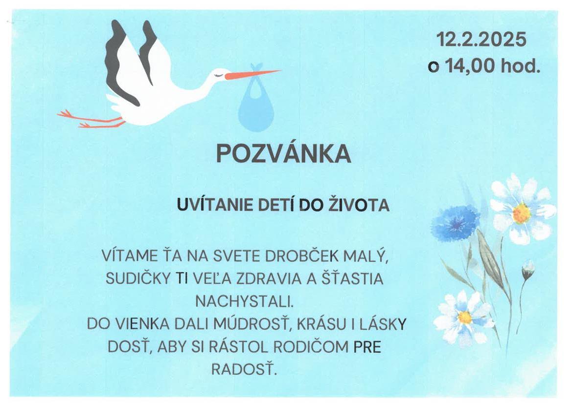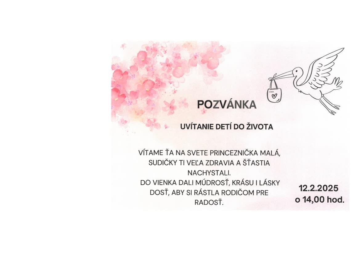Uvítanie detí do života - 2025 - Újszülöttek fogadása az életbe