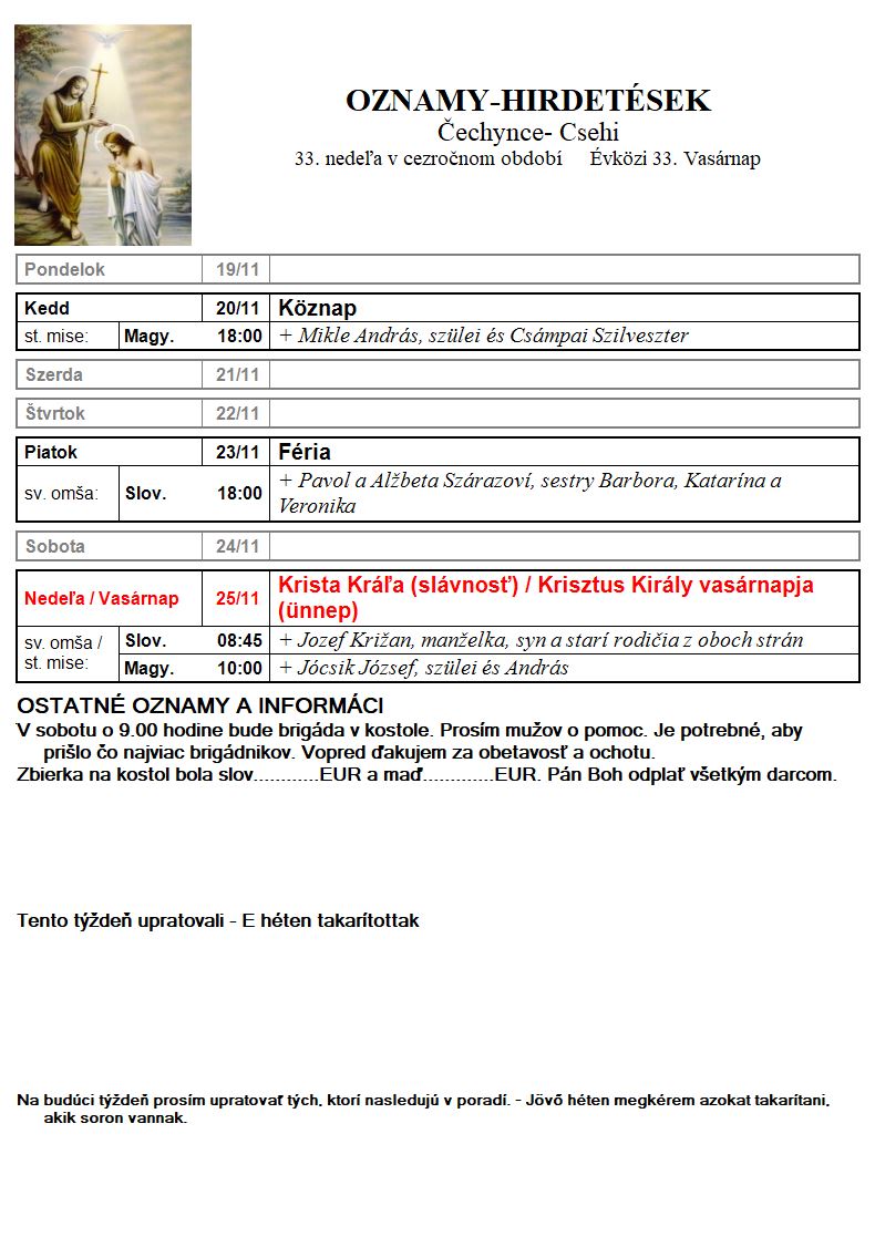 farský oznam - plébániai hirdetés