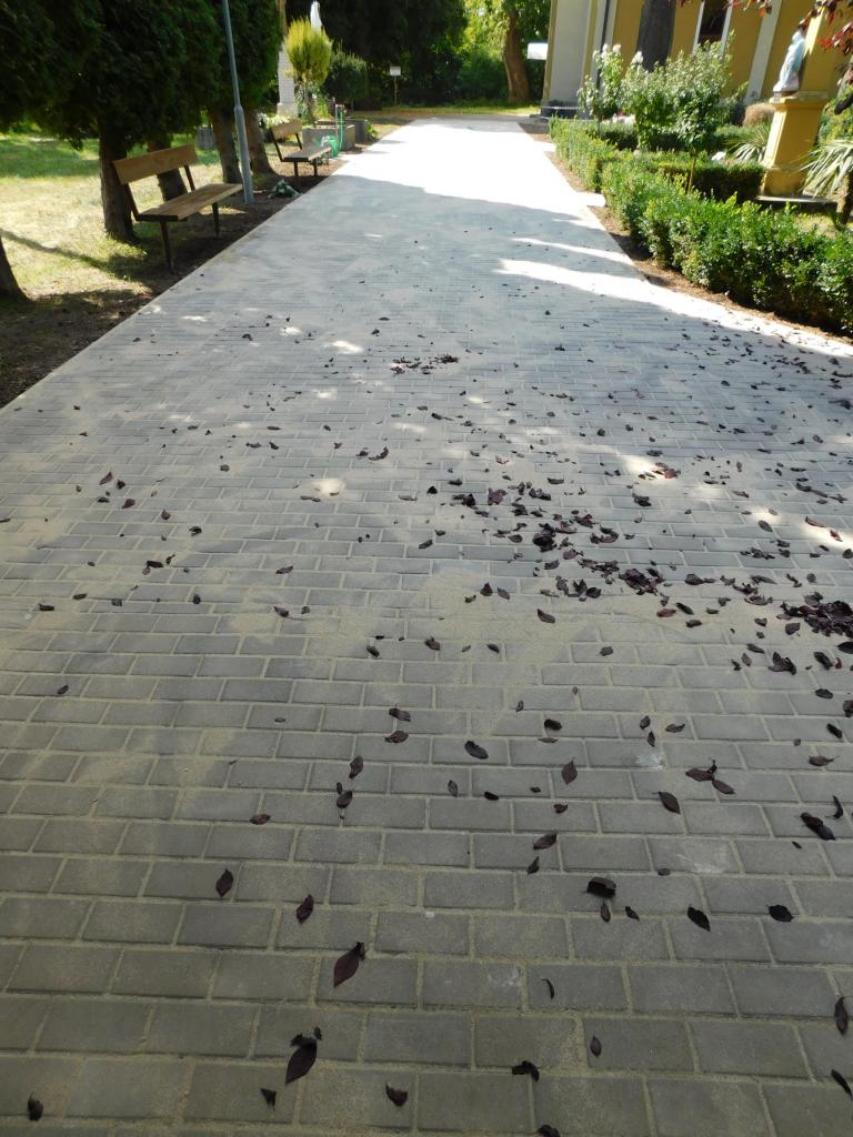 Z vlastných finančných zdrojov obce bol zrekonštruovaný chodník v miestnom areály cintorína z časti od budovy domu smútku ku kostolu.