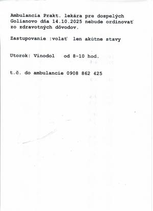Ambulancia AB-Dent, s.r.o. dňa 11.11.2025 nebude zo zdravotných dôvodov ordinovať.