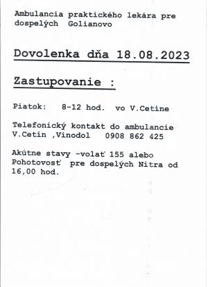 Oznam Ambulancie praktického lekára pre dospelých