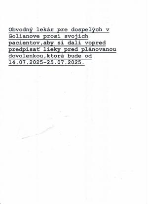 Oznam obvodného lekára - Golianovo - a körzeti orvos hirdetése