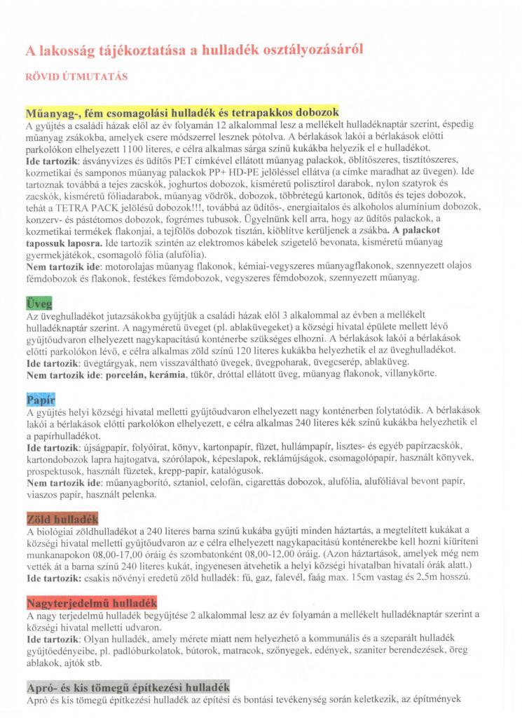 Harmonogram separovania odpadu na r.2021 a návod k triedeniu odpadu v obci