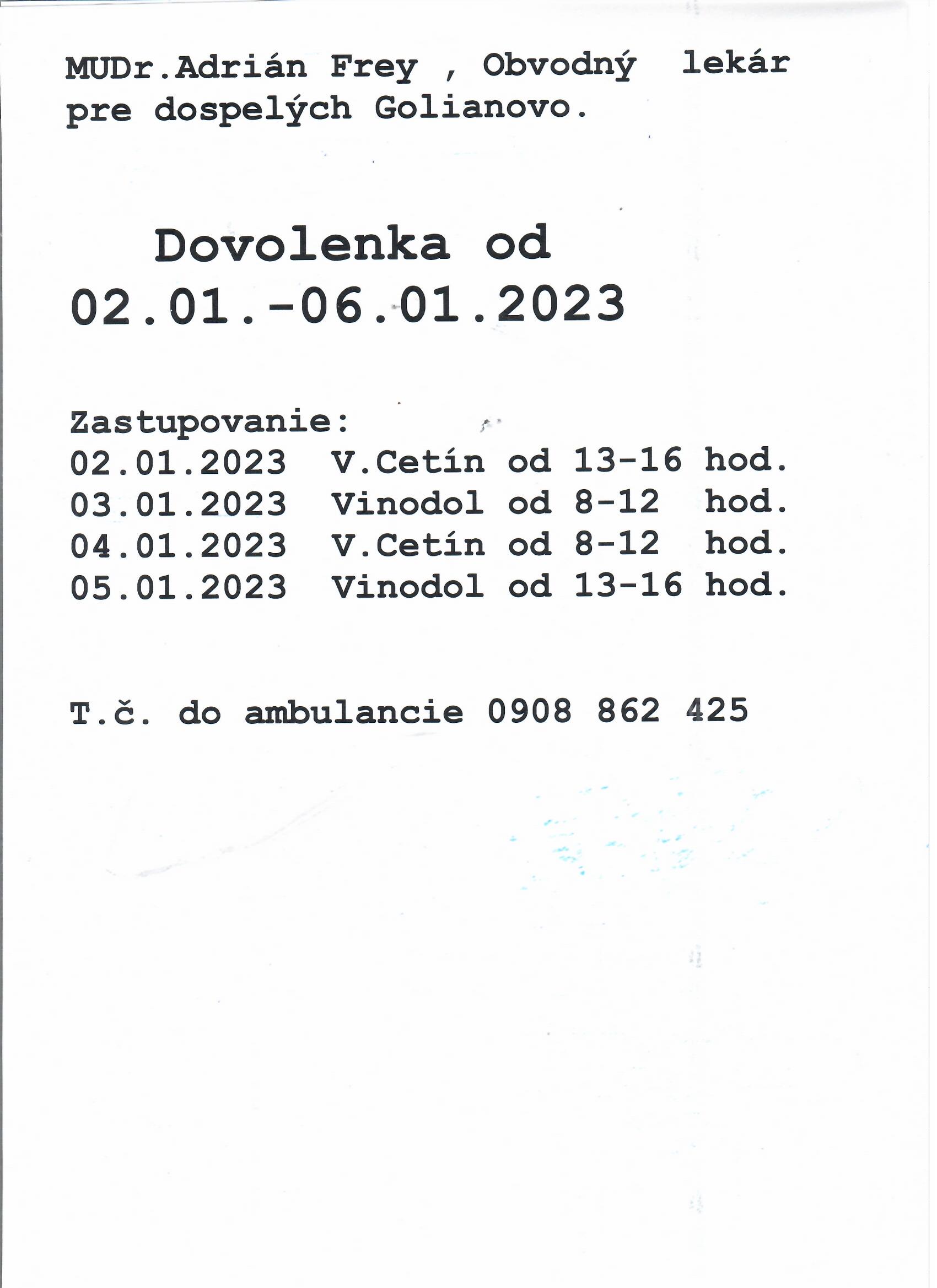 Dovolenka od 02.01. 2023 do 06.01.2023
