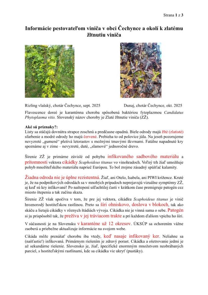 obraciam sa na vás s prosbou, aby ste venovali pozornosť informácii o ochorení zlaté žltnutie viniča, ktoré sa dotýka vinohradov a pestovateľov aj v našom regióne.