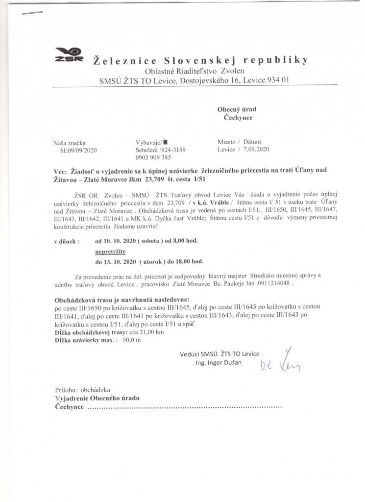Oznam Železnice SR