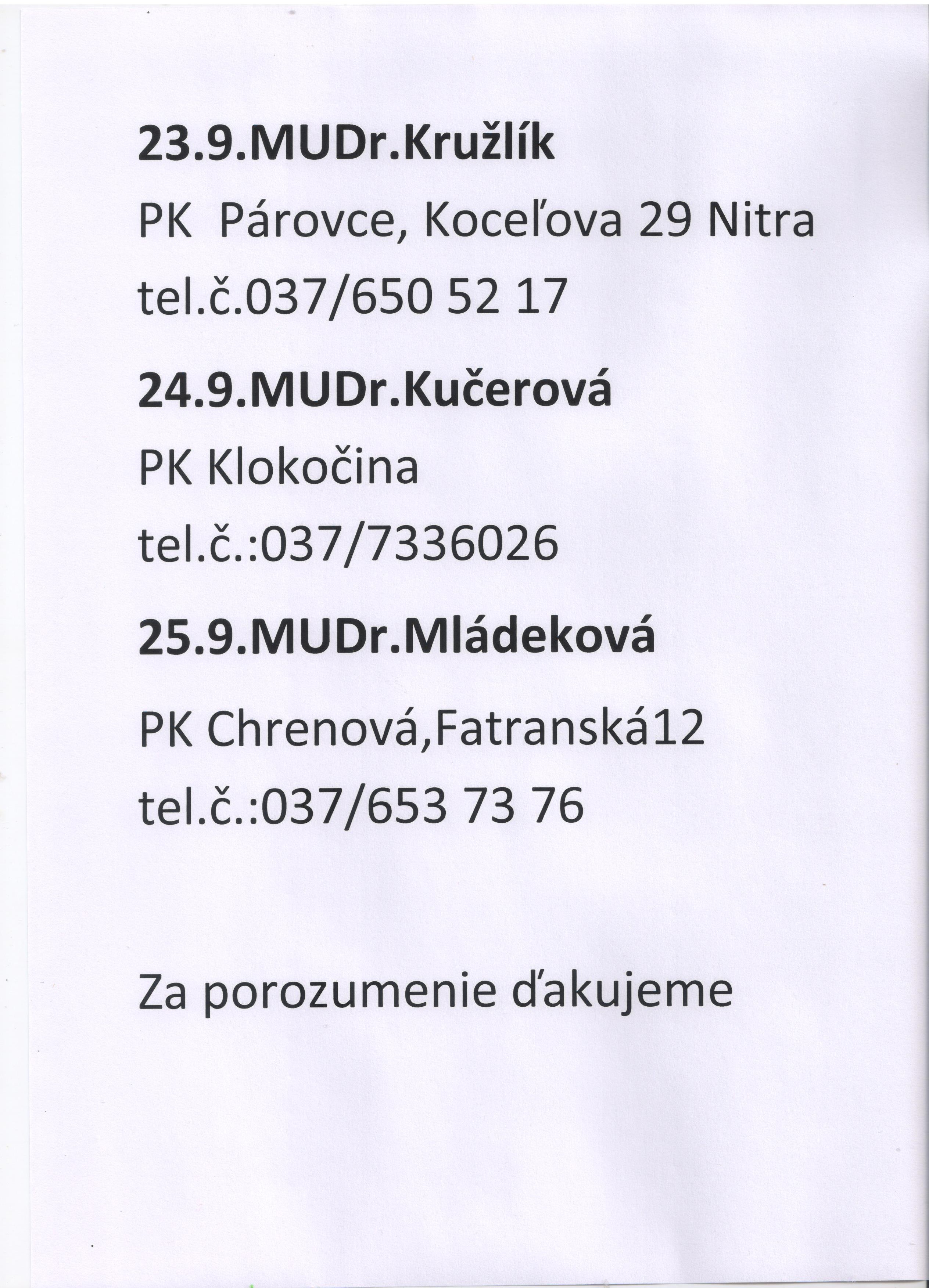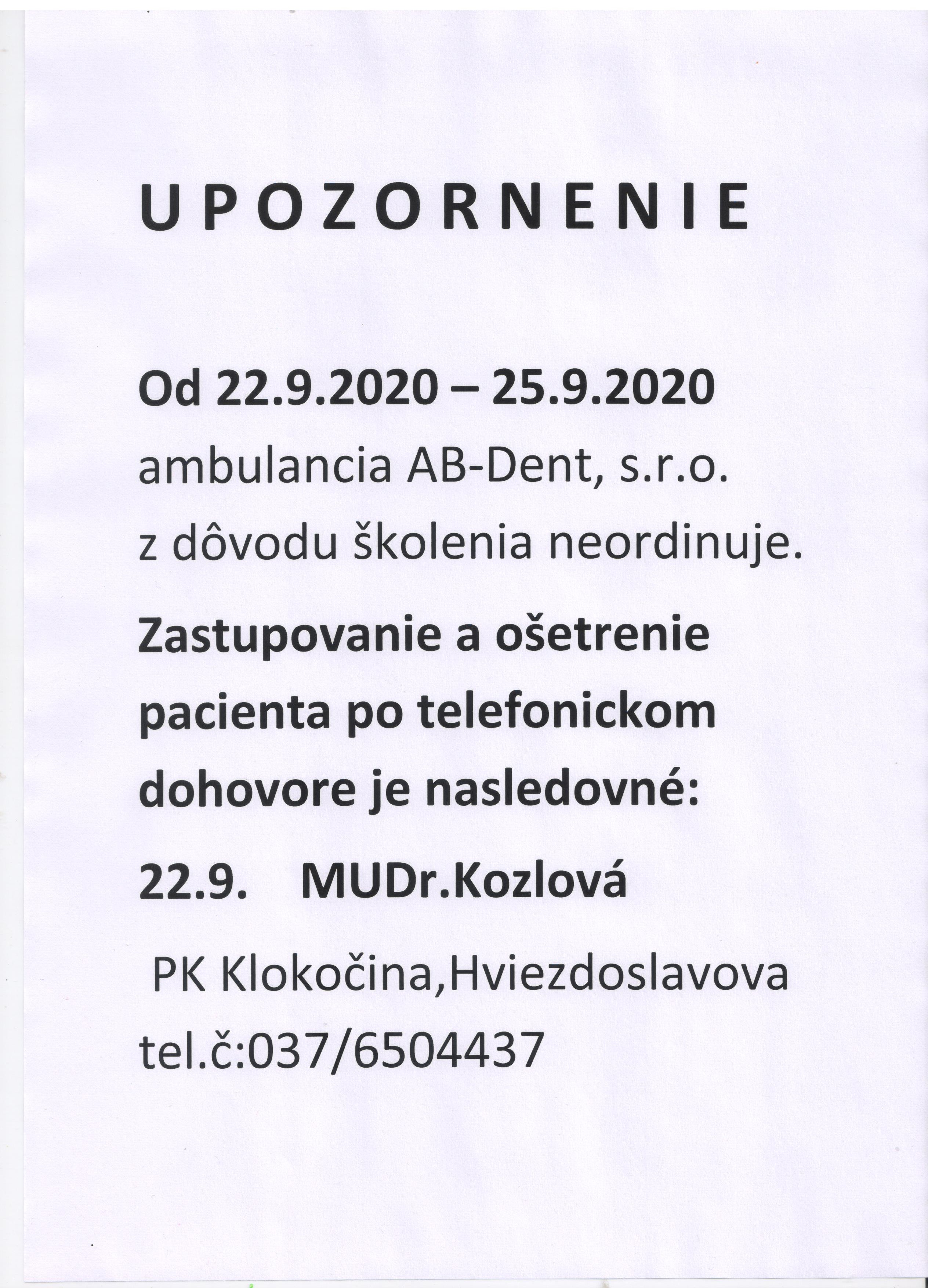 Od 22.9.2020 - 25.9.2020 neordinuje z dôvodu školenia